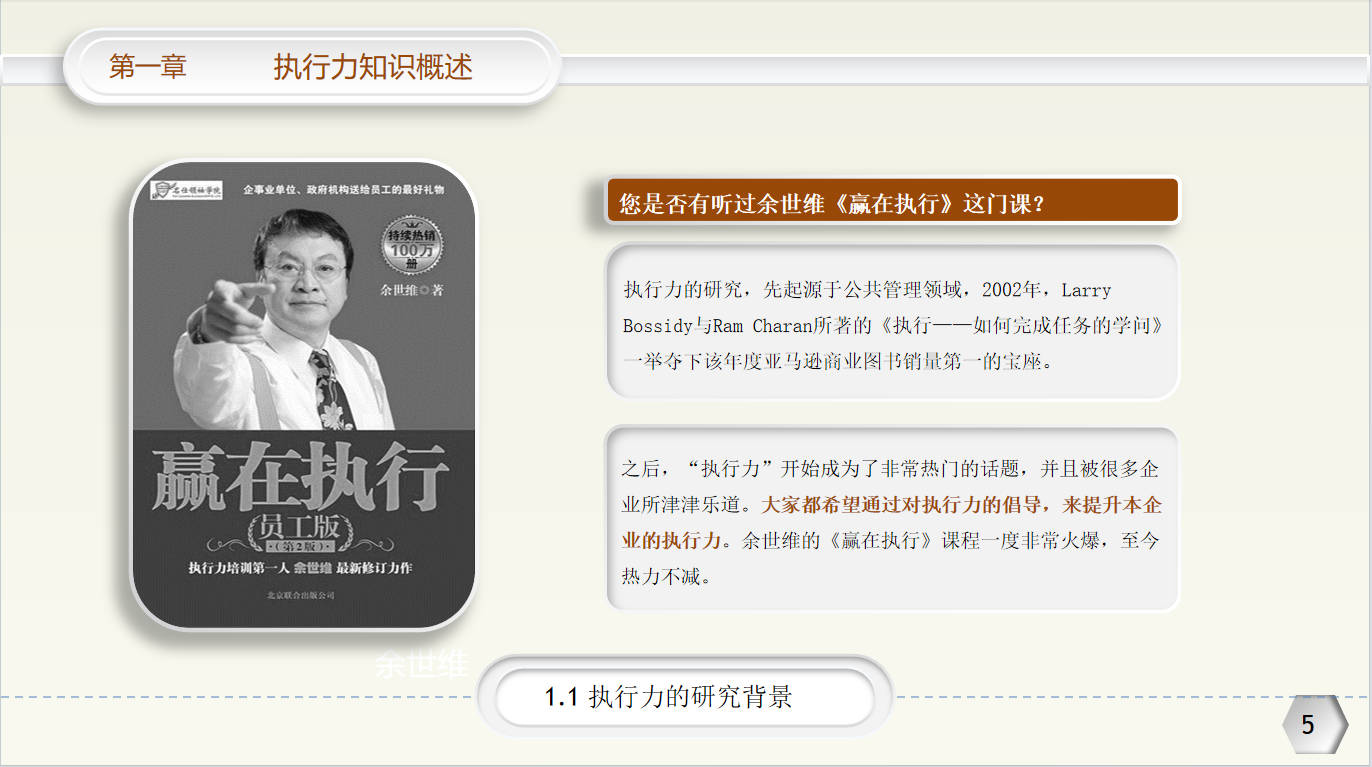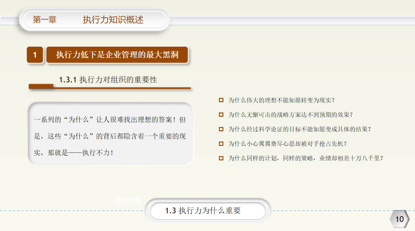 本作品内容为微粒体企业培训教材执行力培训员工培训PPT模板, 格式为 pptx, 大小22 MB, 页数为55,比例16:9, 请使用软件PowerPoint(2013)打开, 作品中主体文字及图片可替换修改,文字修改可直接点击文本框进行编辑,图片更改可选中图片后单击鼠标右键选择更换图片,也可根据自身需求增加和删除作品中的内容, 源文件无水印, 欢迎使用。 如认为平台内容涉嫌侵权,可通过邮件提出书面通知,我们将及时处理。