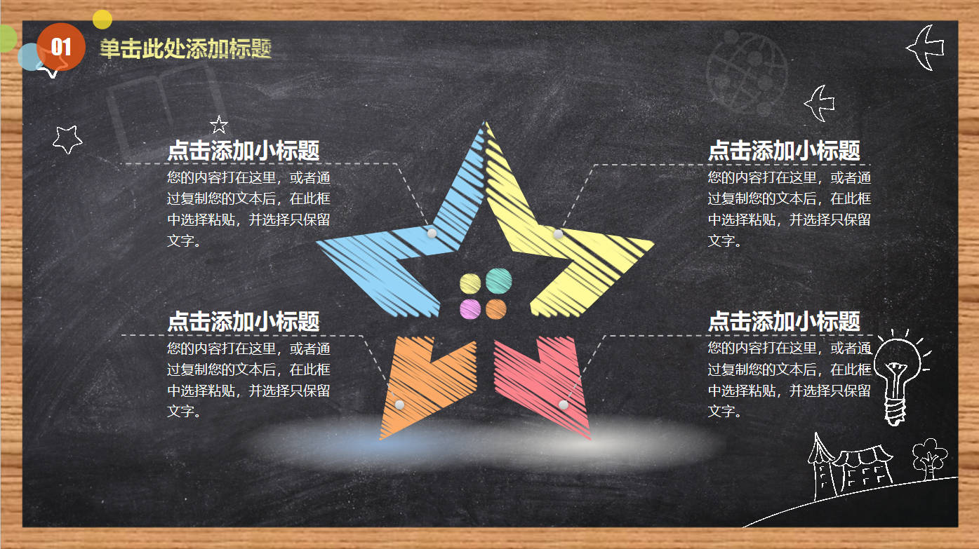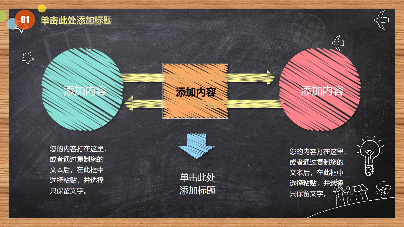 本作品内容为创意仿黑板粉笔风格教师讲课教学设计PPT模板, 格式为 pptx, 大小5 MB, 页数为33,比例16:9, 请使用软件PowerPoint(2010)打开, 作品中主体文字及图片可替换修改,文字修改可直接点击文本框进行编辑,图片更改可选中图片后单击鼠标右键选择更换图片,也可根据自身需求增加和删除作品中的内容, 源文件无水印, 欢迎使用。 如认为平台内容涉嫌侵权,可通过邮件提出书面通知,我们将及时处理。