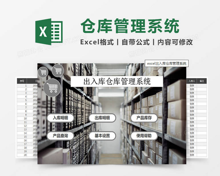 本作品内容为excel出入库仓库管理系统, 格式为 xlsx, 大小1 MB, 请使用软件Excel(2016)打开, 作品中主体文字及图片可替换修改,文字修改可直接点击文本框进行编辑,图片更改可选中图片后单击鼠标右键选择更换图片,也可根据自身需求增加和删除作品中的内容, 源文件无水印, 欢迎使用。 如认为平台内容涉嫌侵权,可通过邮件提出书面通知,我们将及时处理。
